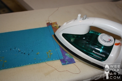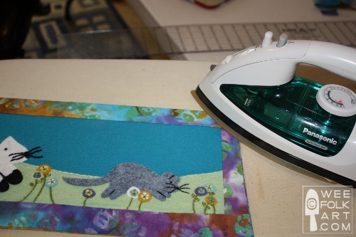 5] Iron the seam flat, with the seam allowance lying on the border, not the felt. (Note: excessive heat can shrink the felt. Try not to overheat the felt.