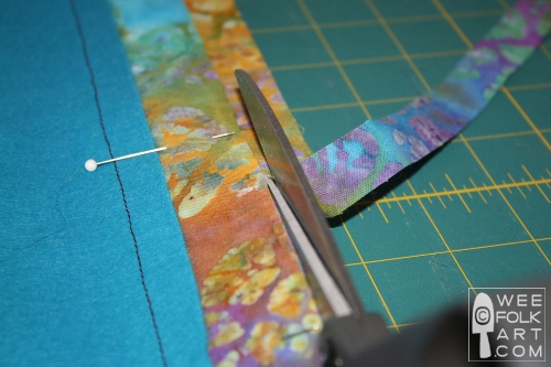 9] Turn the banner over, and using a straight edge, trim the strips so they are even with the side edge of the banner.