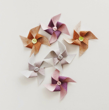 Glue and go with these cute pinwheel hair clips. Made from faux leather and buttons. Sweet!