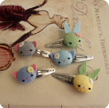 If you can imagine it, you can turn it into a barrette. Sweet felt barrettes that won’t pull the wee one’s hair.