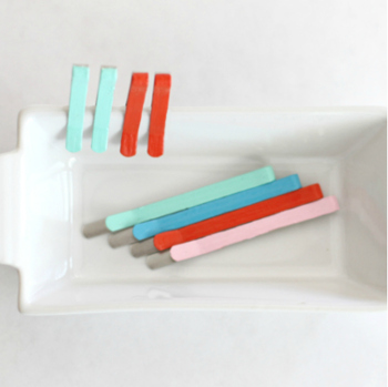 Okay, I think we have a tie for the easiest barrettes ever! These are simply painted. Use 1 in your hair or line up a bunch of colors.