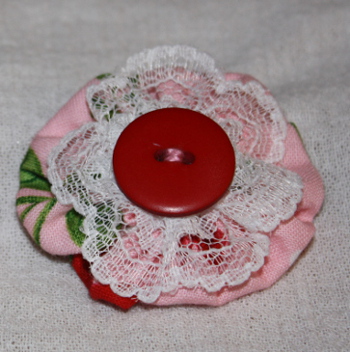 This is a great stash buster! Make a traditional Yo Yo, add a bit of lace and button and you can create barrettes to match any outfit!