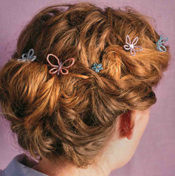Using 28-gauge nicket wire and size 11 seed beads create lovely butterflies or flowers to tuck in your hair. They can also be attached to headbands or barrettes.