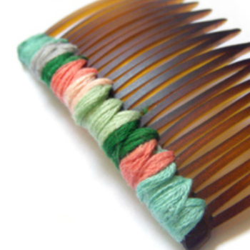 Take a plain brown plastic hair comb and wrap it in floss to create an adorable comb to match any outfit.