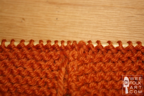 Slide the two legs together. You will now have 20 (30, 40, 50) stitches.
