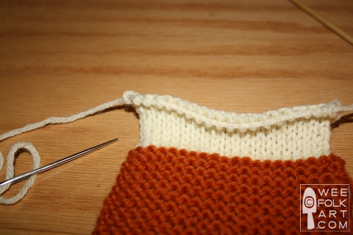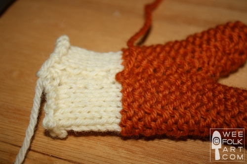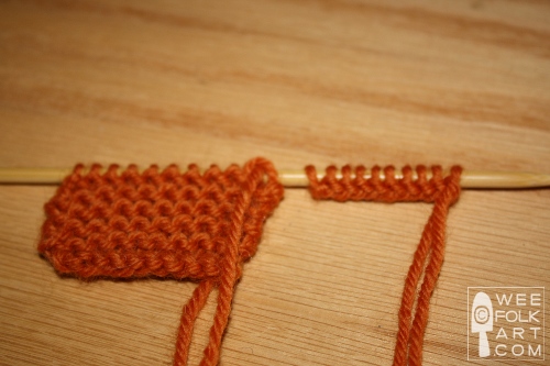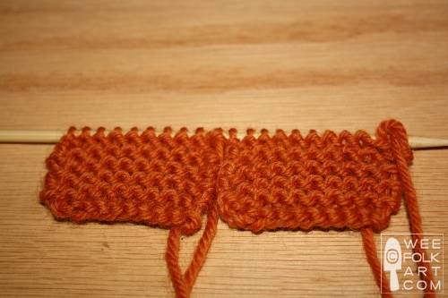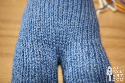 You can chose to knit the bodies and arms in a garter stitch (knit every row) or a stockinette stitch (knit 1 row, purl 1 row). The garter stitch produces horizontal lines and creates a nubbier surface.