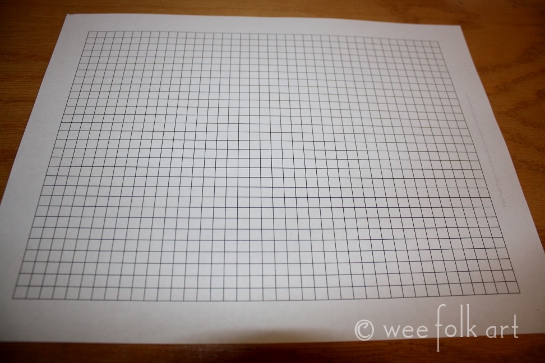 In lesson 2 we talked about using a toothed tracing wheel and tracing paper to mark our felt for practice. Today, we are going to talk about using graphing paper. Graph paper is paper that has been divided into squares of equal size. You can use this to mark your practice felt while you are perfecting your stitch. (I’ll show you how in a minute) Most graph paper comes 1/4″ x 1/4″.  But what if you want stitches that are closer together than 1/4″ or even bigger than 1/4″? Luckily, there are some great, free resources on the net to help you. The site Incompetech has a graph paper generator. You just plug in how many squares you want per inch and print the page, and you are ready to go. Take a minute to check it out HERE. For today’s lesson, print a page with 4 squares per inch. It should look like this: