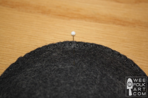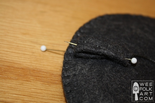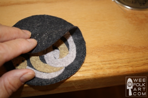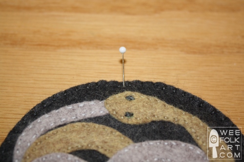 Lay the embroidered felt circle on top of the other. Pin in place and blanket stitch half way around the 2 circles.