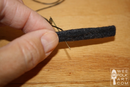 Fold the piece of felt in thirds creating a 2" long, skinny loop. Sew a running stitch down the middle to hold the folds together.
