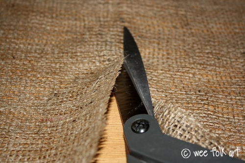 Cut out a strip of burlap 6″ X 36″ Most garden burlap, used for wrapping outdoor plants comes 36″ wide. Cut off the 2 end selvages. (The tightly woven ends on the 6″ sides.)
