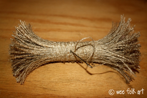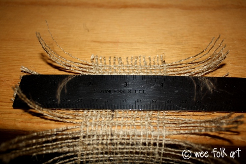 6″ x 36″ strip of burlap, cut on the straight of the grain… very important! (To see how to cut along the straight of the grain, check out the tute found HERE. Each strip makes 1 hay bundle.