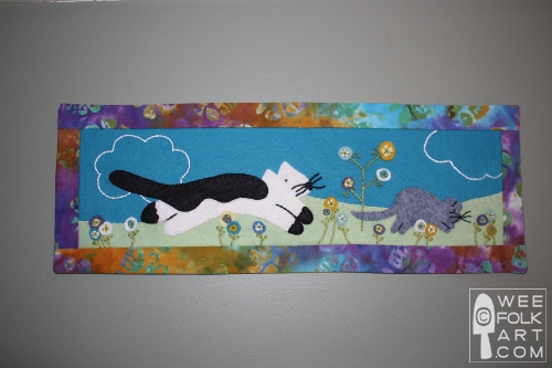 The completed size of our Cat and Mouse Banner is 20" x 7", but can easily be adapted to fit a different space. Also, although I’ve included a pdf with a couple of cloud shapes and some flower patterns, let your imagination run wild and embellish your banner any way you like. The directions and patterns for the Cat and Mouse Banner can be found HERE or with our FREE Patterns. Enjoy!