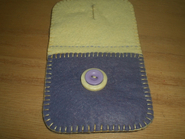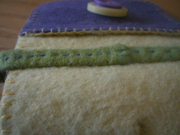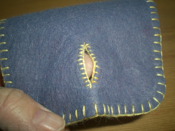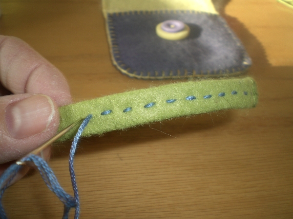 CAUTION: It you are making this as a doll’s purse for children under three years of age do not use a button since it can be a choke hazard. Instead, use snaps or velcro to close the purse and make a felt flower to blanket stitch on.