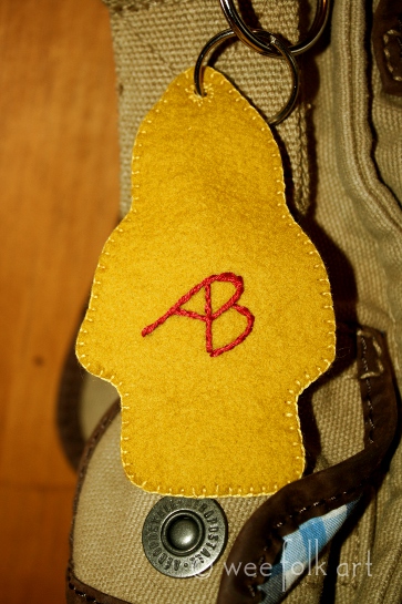 If you wish to add initials to the back of the key chain, do it now using a stem stitch and 6 strands of floss.