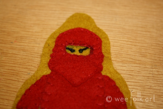 So, I drew out a pattern based on his favorite character, Kai. I am so pleased with the way it turned out and I think Bug is going to love it! Do you have someone in your life that is into Legos? If you do, this might be the perfect gift to whip up… just in time for the holidays 🙂