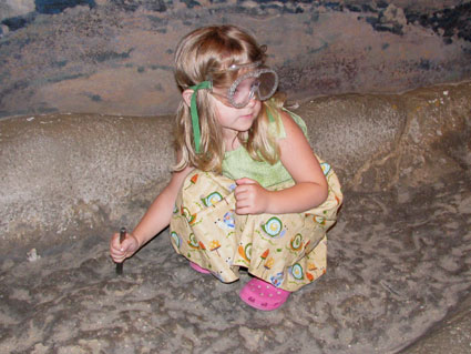The kids got a chance to dig for dinosaur bone with a small chisel. It would have taken them years to actually get one of those bone out of the waxy composite in the display.