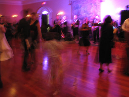 Hmm… no the photo below was not me trying to be artsy… I was just desperate to get something from the wedding on film (err in pixels). That blur in the front is Fairy girl dancing. My kids couldn’t wait to hit the dance floor… Bug was literally twitching in his seat to get out there and I had to coax them back at some point to eat a few bites of dinner.