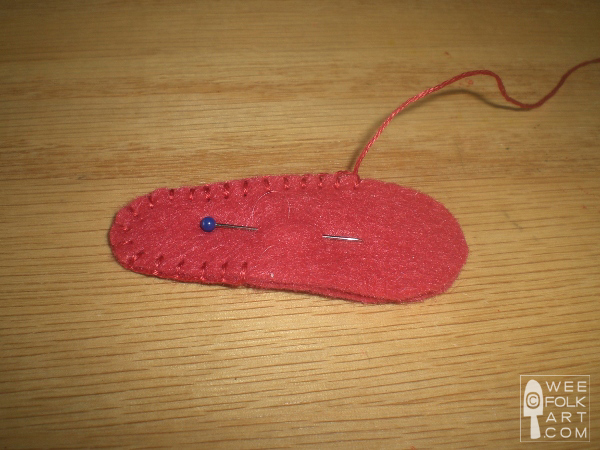For Brooch: Tack pin to the right side of the back banner piece. Place the pin on an angle following the slant of the top to the piece. Place wrong sides of the banners together. Pin in place. Using 6 strands of embroidery floss, blanket stitch sides, bottom and top to attach front and back.