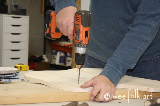 Using a drill bit slightly smaller than the width of your screws, drill a pilot hole through the marks you just created. On our 1st platform there were 4 holes to drill since there are 4 branches on the bottom floor. NOTE: In Part 1 we shared a list of the types of screws we used for the project and the sizes. You can read about them HERE.