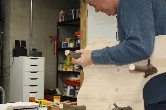 For the second level, we cut a small piece of branch to cover the exposed dowel screw. Eventually, this can be used as a base for a table, as a chair, or even a perch for an owl.