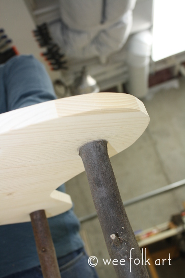 Because I had an awesome branch that had an end that looked like a tree, I decided to add this branch section to the top. We used a dowel screw, drilled a pilot hole in the bottom of the “tree section” and screwed it on the top platform.