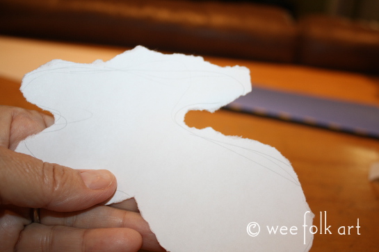 Another way to approach it is to loosely draw a shape to help guide the rips. When the child is done ripping, it may not look like what was originally drawn, but that’s okay. They can decide what it looks like! Below, in the finished book, my snail was suppose to be a turtle. It looked more like a snail to me when I was done so a snail it was! When gluing the clouds to your book, put glue on the side of the cloud that has pencil marks and you’ll never see them when they are on the page.
