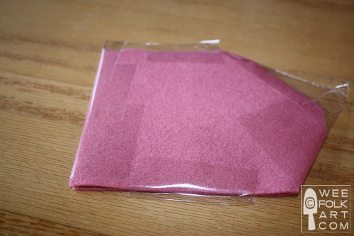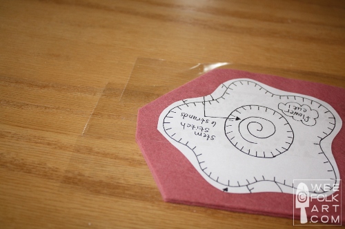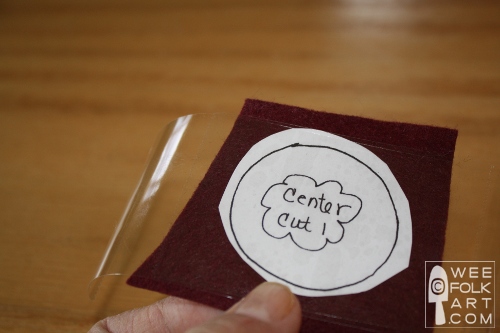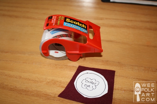 NOTE: Some people like to use freezer paper. I have done this on occasion. To do this print or trace your design to the dull side of the freezer paper. You can then iron this directly to the felt. I prefer the tape for a couple of reasons. First, I’m lazy. I do not keep my iron or ironing board out and I’d rather not hassle with it. Second, I have had some of the wax from the paper make some felts shiny, and lastly, I shrunk a piece of handmade felt even though I used just a warm setting on the iron. If you do like to use freezer paper, then simply skip all my comments about the tape.