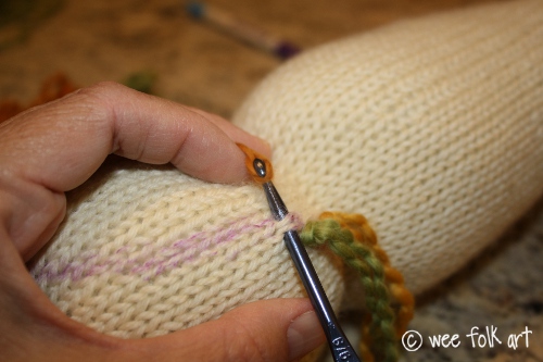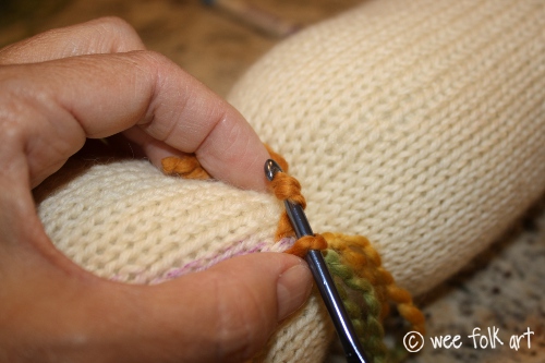 Knitted in the Round 12″ Baby Doll – Part 2 – Adding Hair and Face