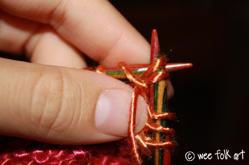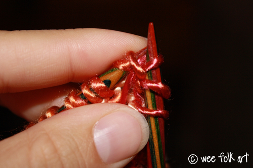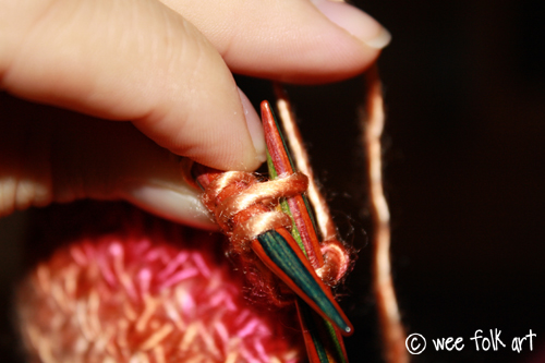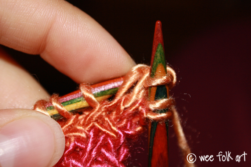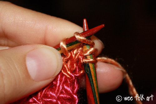 Purl the first stitch on your needle.