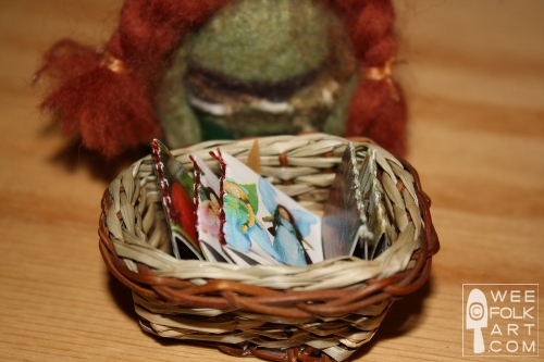 Who doesn’t like a good book? Well, gnomes love the old traditions of sitting around a campfire and telling tales of adventure and folly. But, they also like curling up in easy chair at home, in front of a fire, and reading of places far and near. With the help of a few toy catalogues and other recycled papers, you can make a basket of books for your gnomes, and their friends the fairies, to read and enjoy.