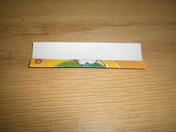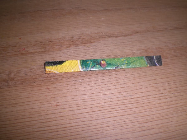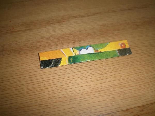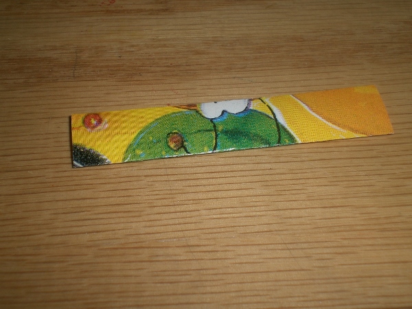1] Cut used gift wrap into 1” x 2 3/4” pieces.