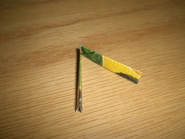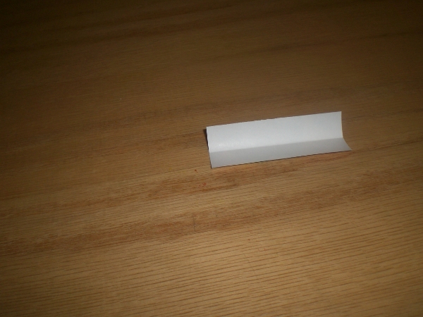 3] Open and fold either side into the center line you just created. The folded piece should measure approximately 1/4″ x 2 3/4″.