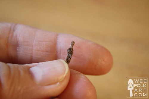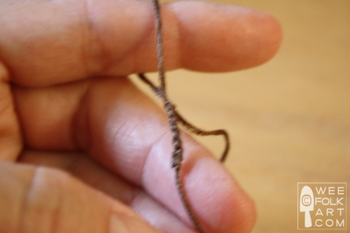 10] To make the stem, finger stitch or crochet a chain 1/2″ long using 6 strands of embroidery floss. Tie off the end of the chain but leave a long tail. Clip the thread at the top of the chain so only about 1/8″ remains.