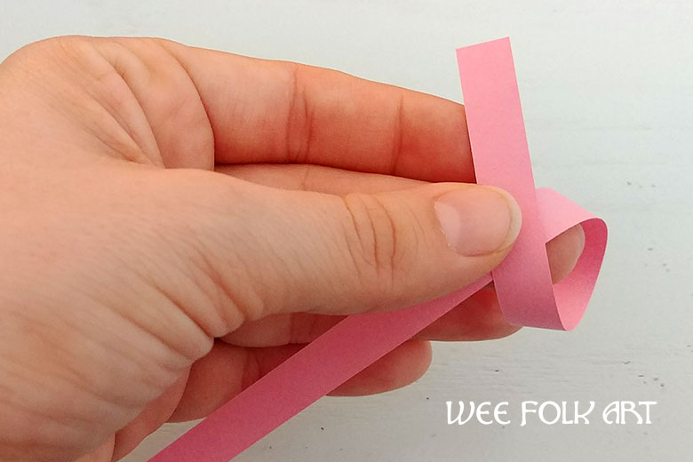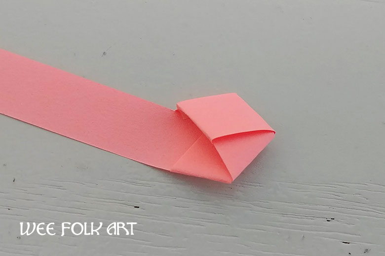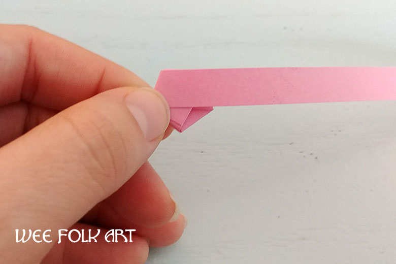 Begin by creating a loop at one end of your origami paper strip.