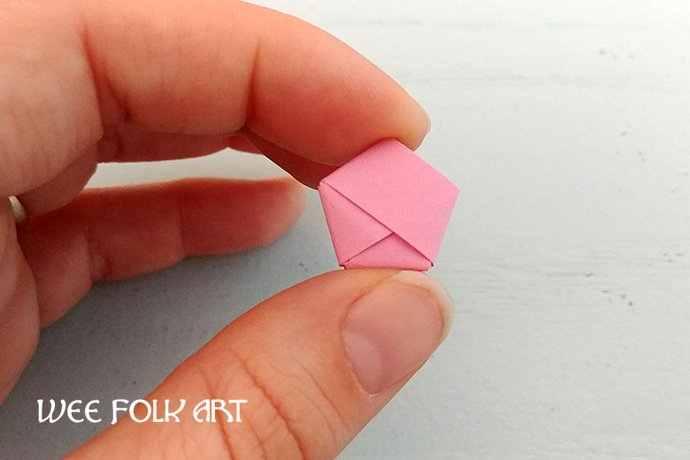 - If the mini paper star is not puffing out correctly you may have wrapped the pentagon base too tightly or not aligned all the edges cleanly. Be careful with each and every fold.