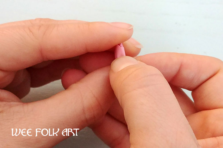 Carefully use your main hand thumbnail to press the pentagon edge in, directly in the center of a side. Be sure not to squish the pentagon shape with the hand holding it in place.