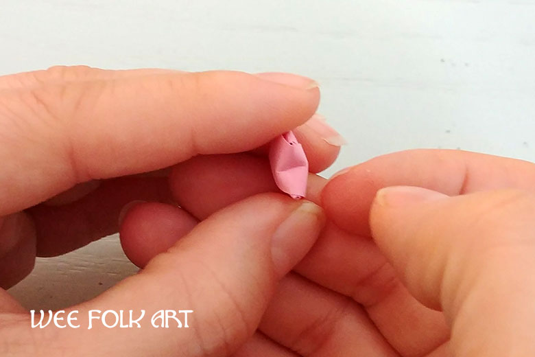 If on the final fold, the end of the strip sticks out past the base pentagon, trim or fold under the end of the strip so that it is even with the pentagon base.