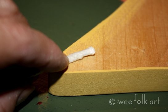 Add some wood or crafting glue to the peg and push down into the hole. Wipe away any extra glue with a wet rag.