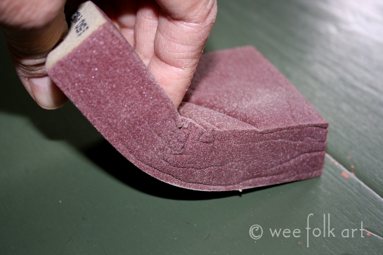 Lightly sand the edges. HINT: When sanding straight, smooth surfaces, used a flat piece of sandpaper. When sanding curves, like the edges of the kite, use a flexible sand paper like the sanding sponge pictured here.