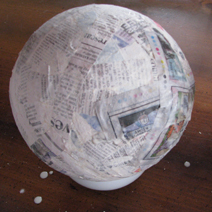 After the paper mache dried completely, I cut off the balloon tails. The balloons pulled away from the inside of the egg. You could try to remove the balloon if you wish, I didn’t bother. Then I made a little paper mache to patch over the holes.