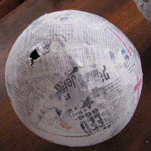 After the paper mache dried completely, I cut off the balloon tails. The balloons pulled away from the inside of the egg. You could try to remove the balloon if you wish, I didn’t bother. Then I made a little paper mache to patch over the holes.