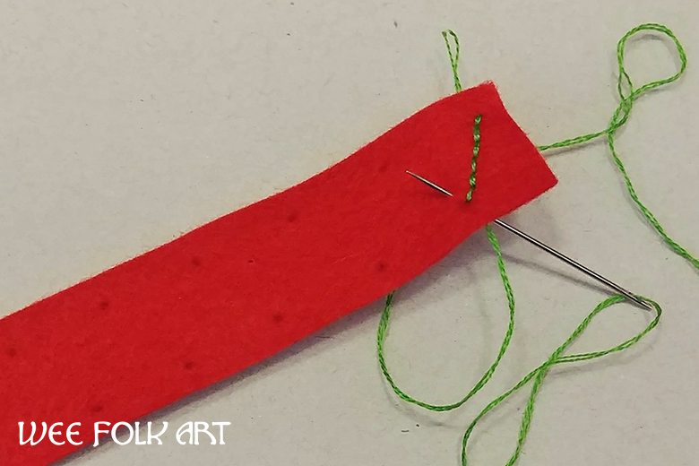 Here is another easy-to-make felt ornament that was inspired by the popular paper strip ornaments. My girls had a dance convention last weekend and I had lots of sitting around time to get some crafting done. It had to be easy and not require a lot of concentration or supplies. I pre-cut a bunch of green and red felt into 1 inch wide stripes, grabbed my embroidery floss tupperware, scissors, and crafting glue and I was good to go. I made several of theseĀ Paper Strip Inspired Felt Ornaments while sitting on the floor of the convention center lobby, chatting with other moms.