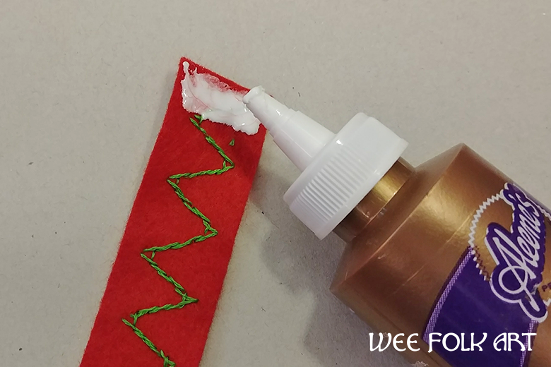 Assemble the felt strips together. Cover the inside edge of the strip with about a 1/2 inch of glue.