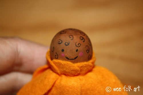 Using a fine tipped, permanent marker, add a face and some “seeding looking” designs to represent both hair and seeds. Using paint, add a touch of pink for checks.