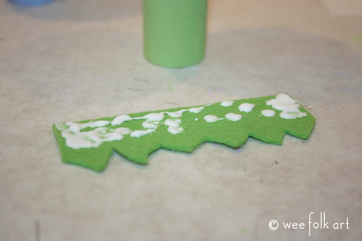 From the felt cut out the dress or skirt from the pattern. You can place the glue directly on the peg or on the piece of clothing. Glue in place.