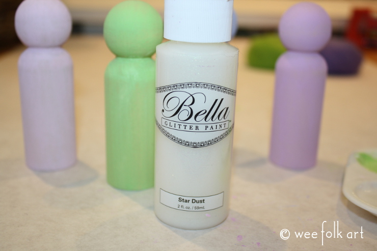 After the paint dried, I went over the pegs with a clear glitter paint to give them extra glitz! It seems they no longer make the paint I used, but DecoArt makes a similar paint which can be found HERE.