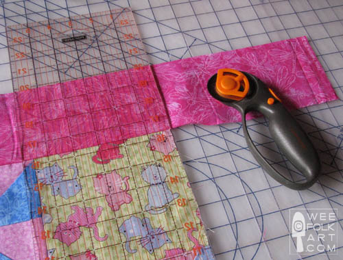 Cut out your border. You will need 4 4×42" strips. Your strips will be longer than you need. I always like to leave my border longer and trim them after I sew them on.