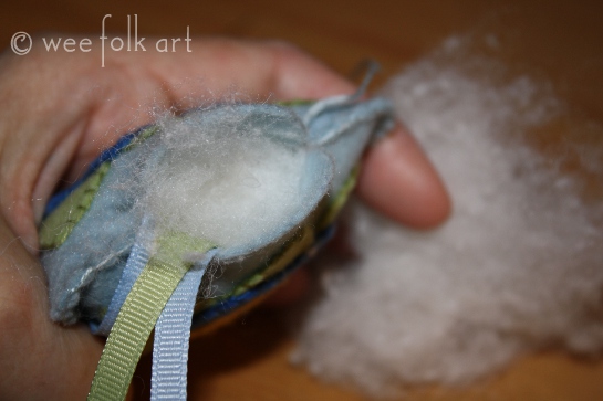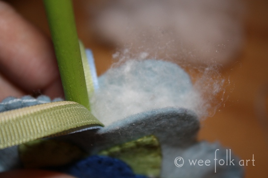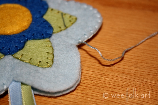 Using a blanket stitch and the attached piece of floss, sew up the remaining petal, stuffing as you go.