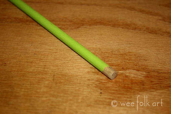 Paint the dowel rod green. NOTE: It is not necessary to paint the dowel, but by painting it green, it looks more like a stem 🙂 If you do not paint the dowel, finish with a Beeswax finish to prevent the wood from drying out.