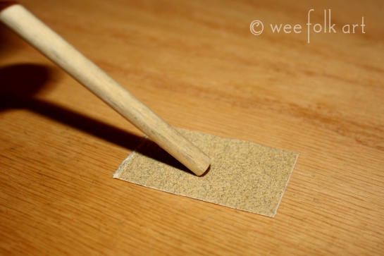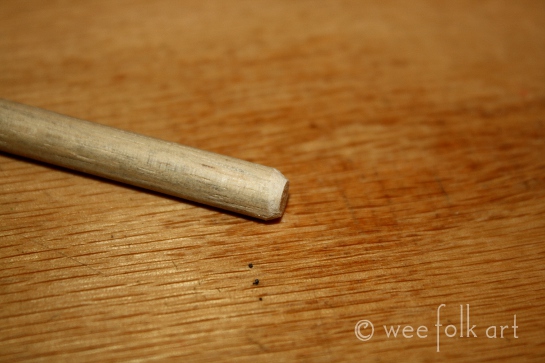 Lightly sand one end of the dowel rod rounding the edges.